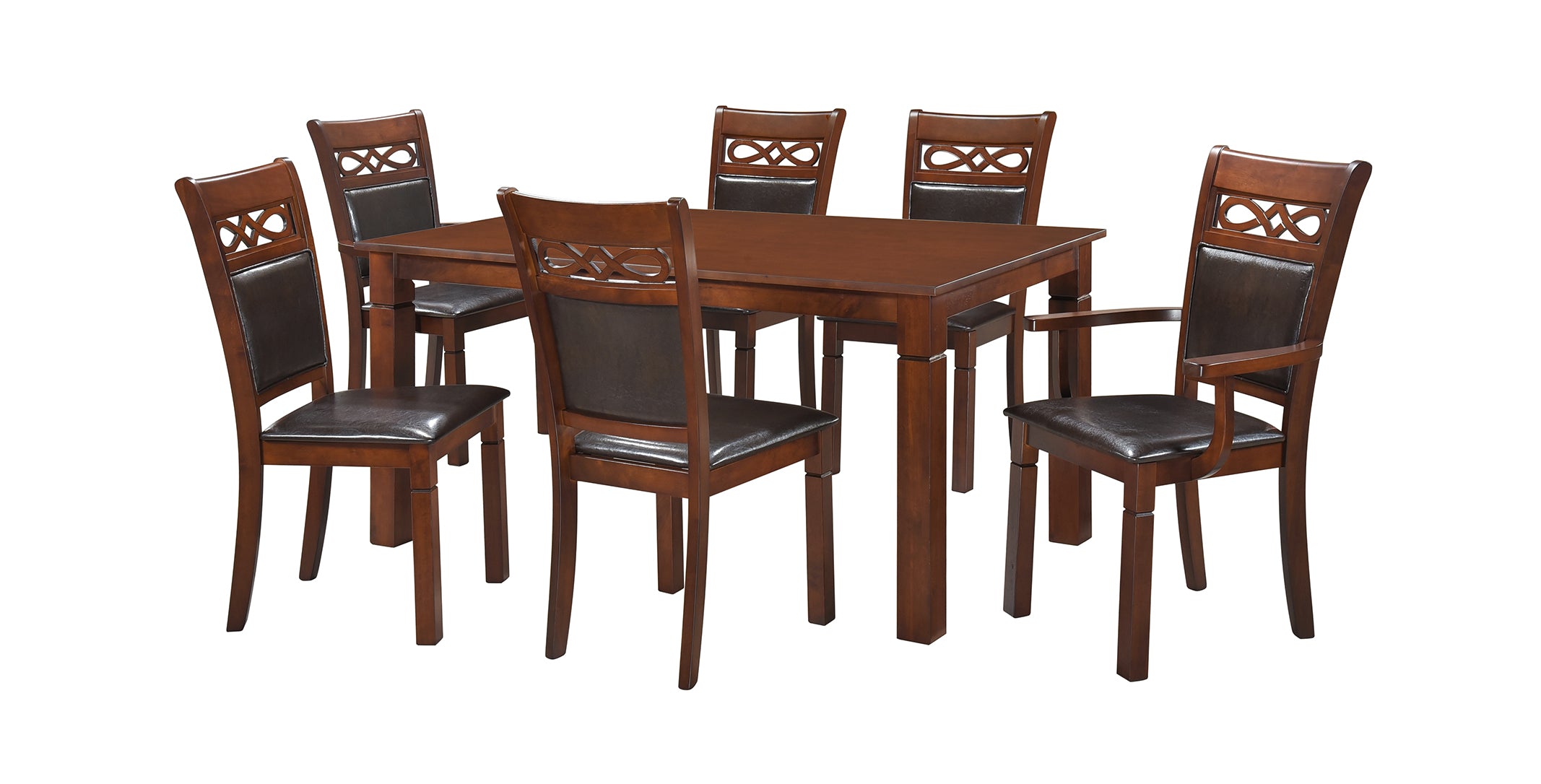 Juego de Comedor Capri PU, 6 Sillas 2 Sitiales. Madera